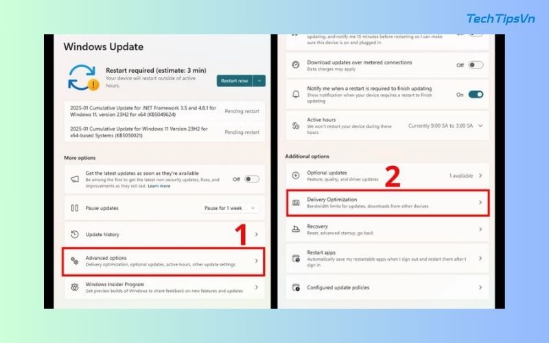 - Bước 2: Chọn tiếp Tùy chọn nâng cao (Advanced options) và nhấn vào Tối ưu hóa phân phối (Delivery Optimization).