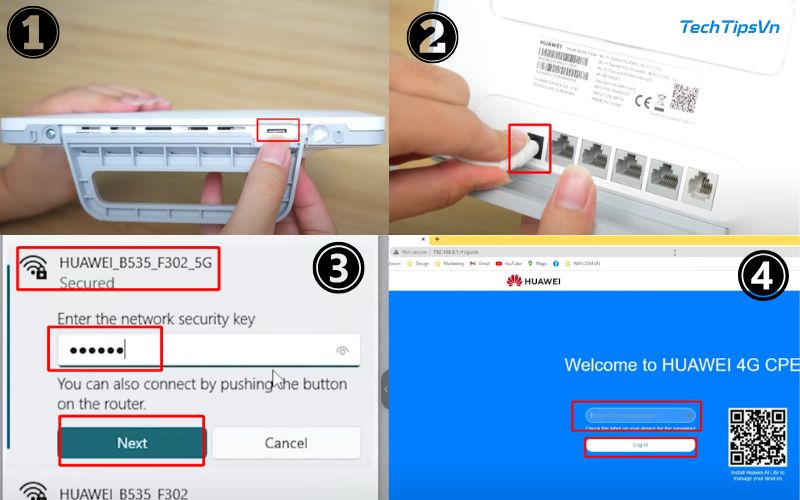 Trên điện thoại hoặc máy tính, bật WiFi và tìm tên mạng (SSID) được in trên mặt sau hoặc dưới đáy thiết bị phát. Kế đến, để dùng 4G thay cáp quang thì bạn cần nhập mật khẩu mặc định của thiết bị để kết nối.